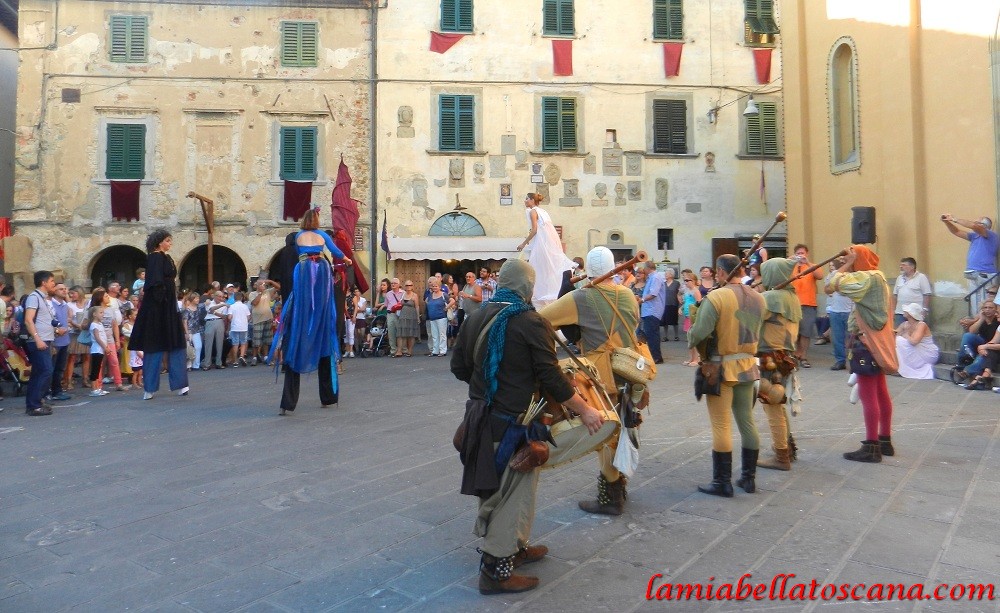 Fin dal pomeriggio ci sono state numerose iniziative che hanno coinvolto i visitatori, con falconieri, artisti di strada, trampolieri, mentre il corteo dei figuranti girovagava per tutti i vicoli animati anche dai vari stand enogastronomici.