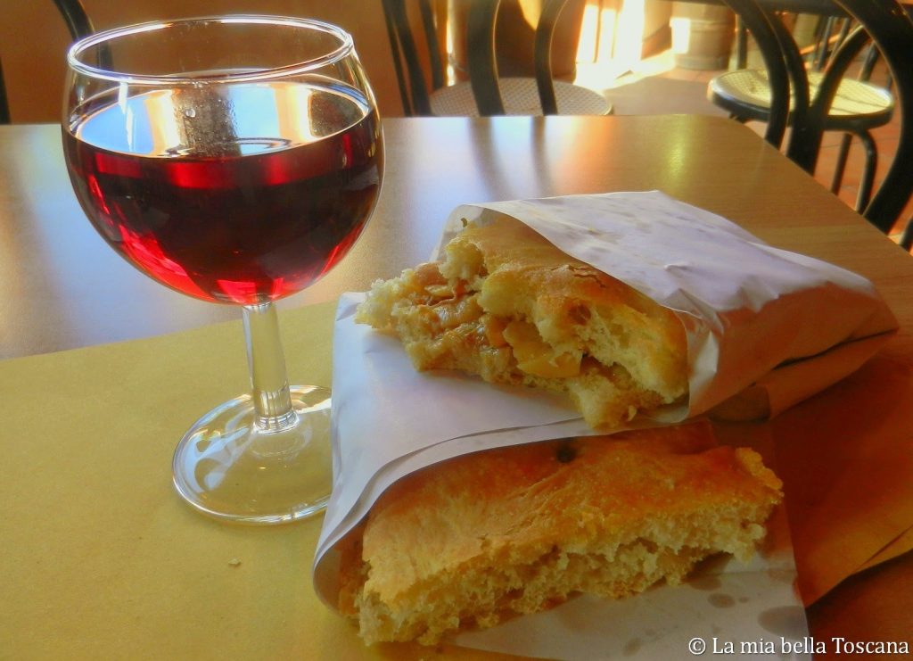 Da provare la schiacciata con funghi porcini accompagnata da un buon bicchiere di Chianti.