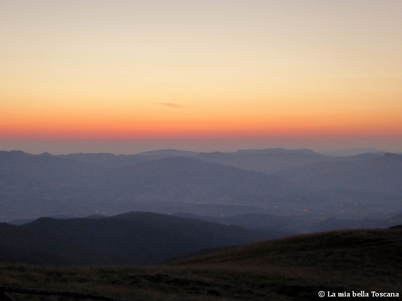 Alle 4.30 è iniziata la nostra salita a piedi verso la vetta e già a quell’ora sul versante del Casentino si vedeva un bel chiarore.