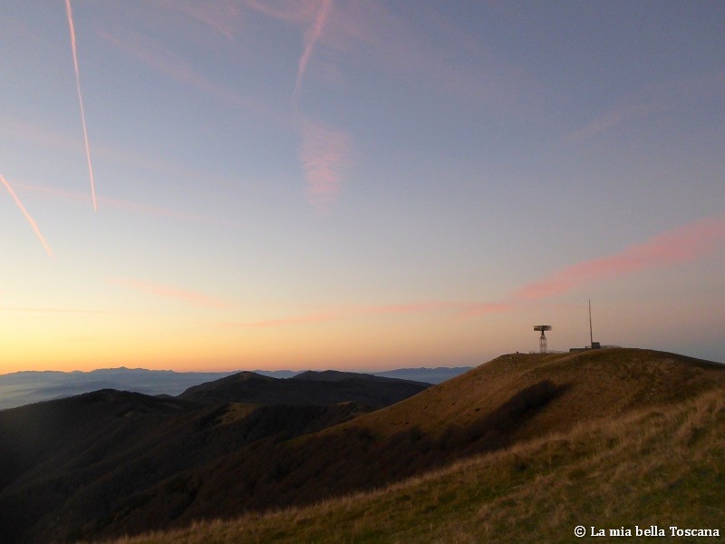 Il cielo sopra la Croce del Pratomagno cambia aspetto in poco tempo mentre gli ultimi bagliori di luce stanno per abbandonare la vallata.