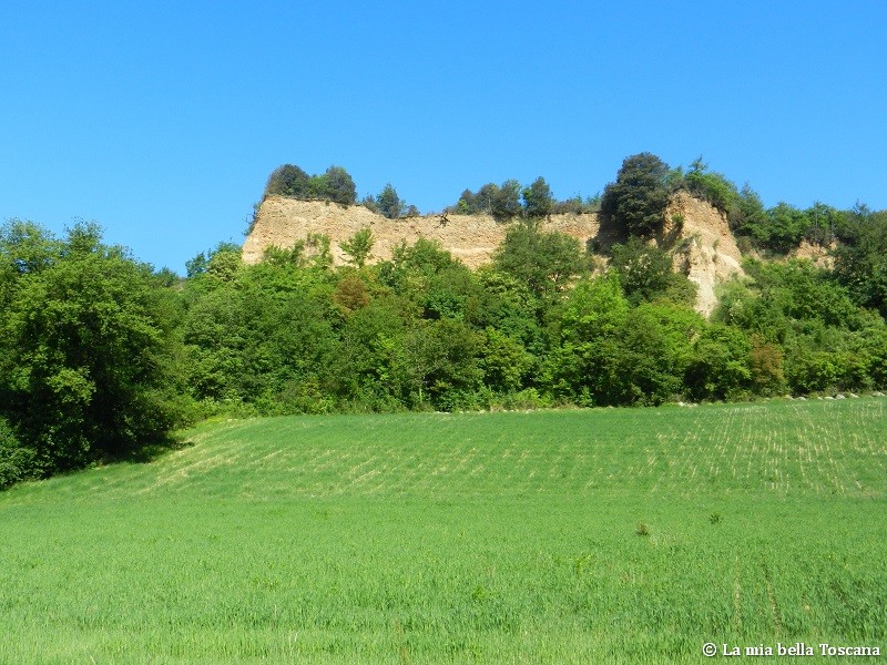 - Al secondo incrocio, dopo aver superato la gelateria-parco Carabè, c’è la strada che porta al borgo di Persignano. Ai suoi piedi c’è uno spettacolare anfiteatro naturale di balze.